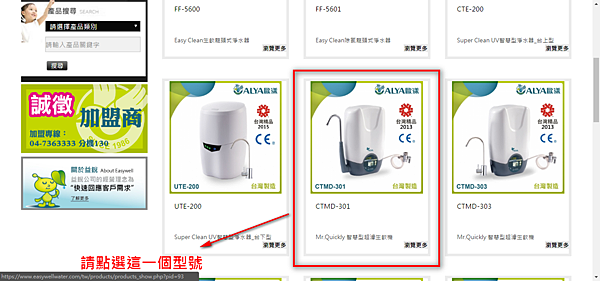 Step1:在歐漾官網https://www.easywellwater.com/tw/找到Mr.Quickly 智慧型超濾生飲機(CTMD-301)的產品頁面並截圖。