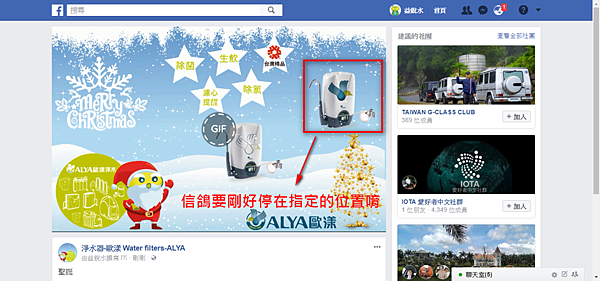 步驟三:到歐漾淨水的粉絲團裡面找到活動頁面,並讓信鴿停留在指定的位置裡面,並截圖唷